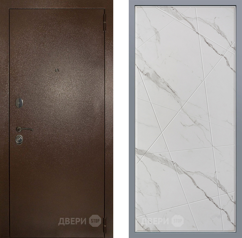 Входная Дверь Заводские двери Эталон 3к антик медь Флитта Мрамор белый 960x2050 мм