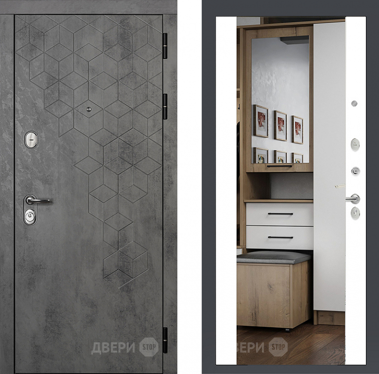 Райтвер Бетон 1501 с зеркалом Белый матовый в Шатуре 960х2050 мм